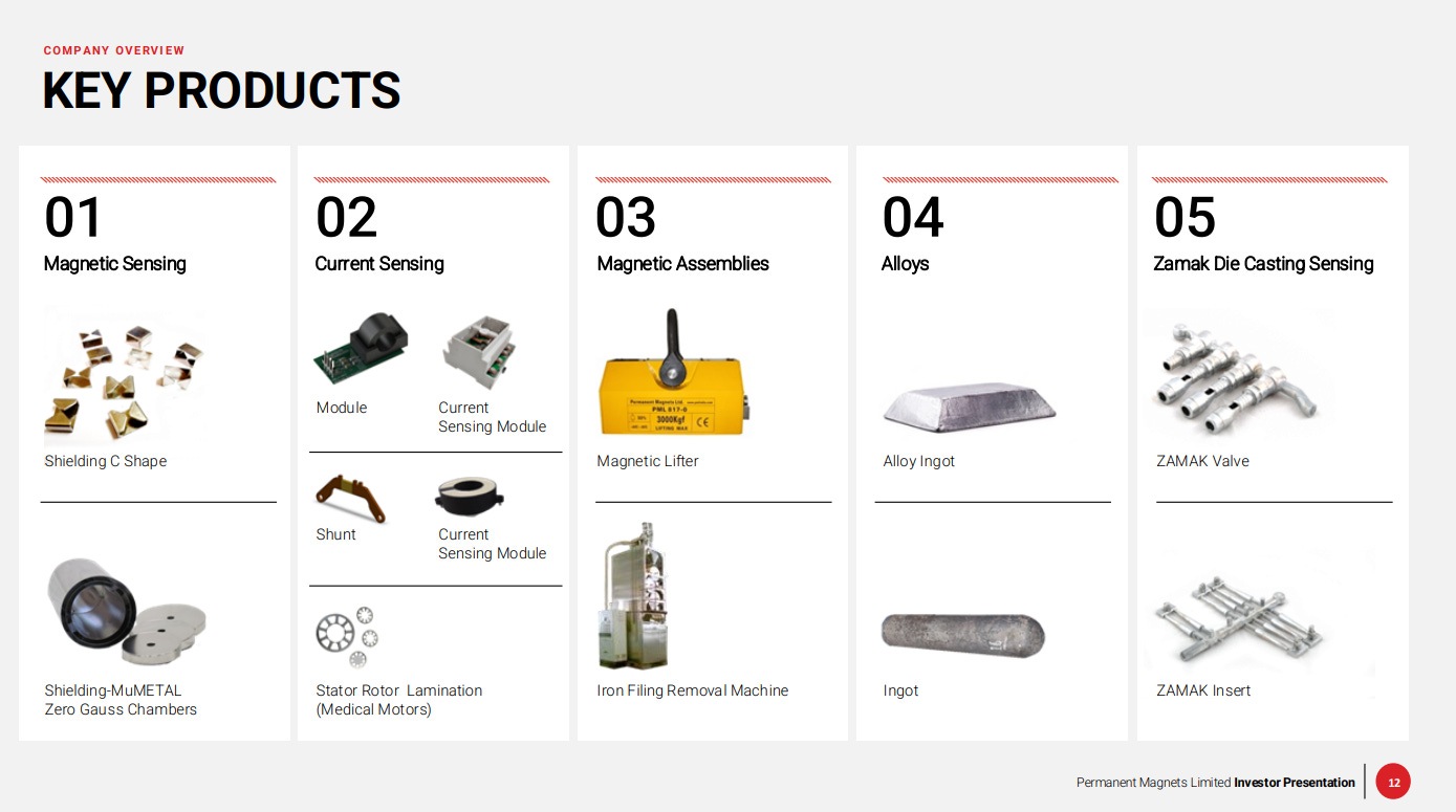 The company makes various products like magnetic sensors, current sensors, current transformers, magnetic assemblies & alloys — which find applications in electricity meters, automobiles etc.