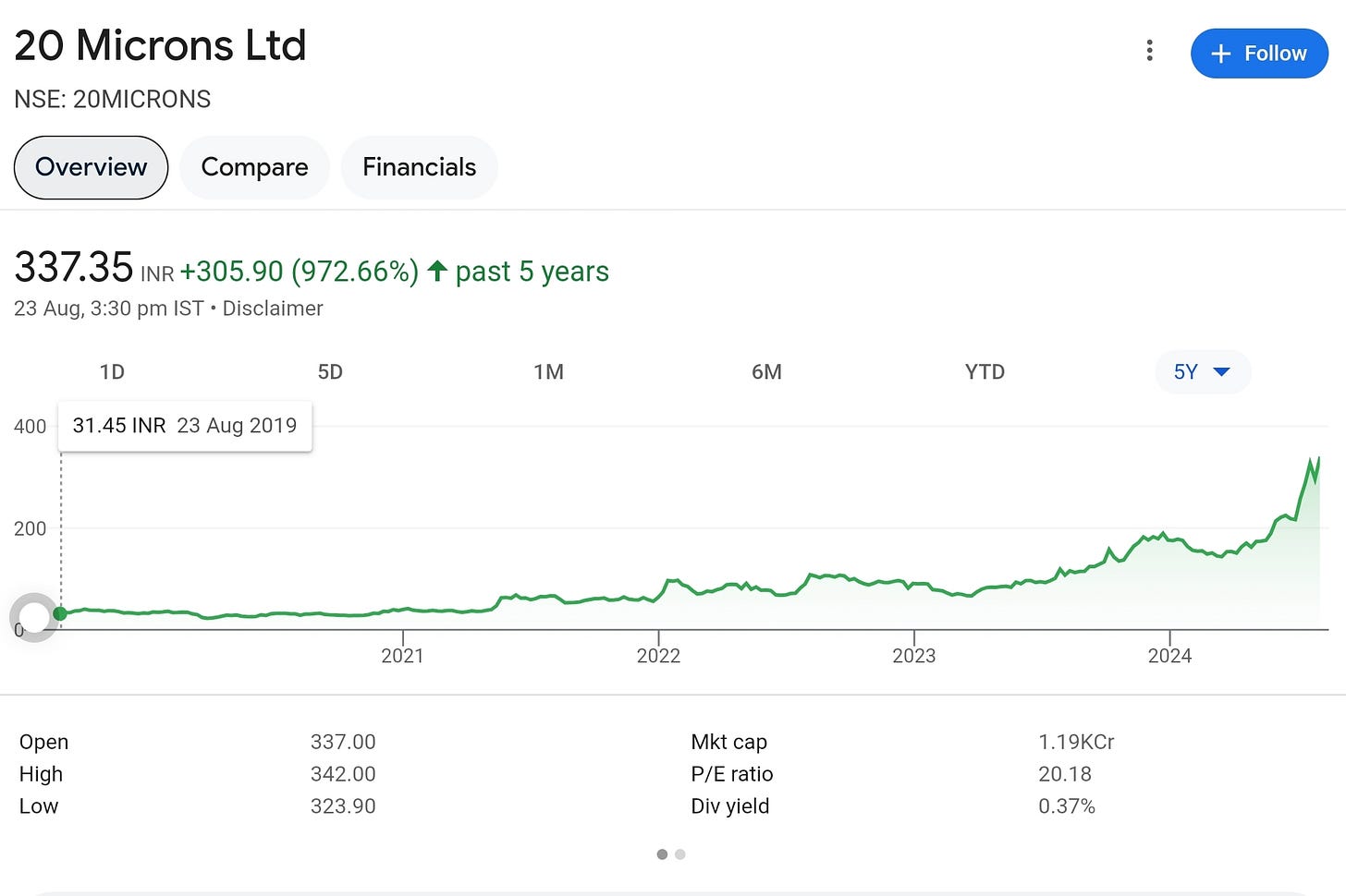 With that in mind, we embark on the exploration of another micro-cap — 20 Microns Limited. (at the time of writing, the company’s MCap isn’t < 1,000 Cr anymore 😷)