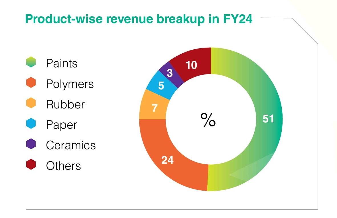 This segment contributes >50% of the topline. The company serves as a Level 1 supplier to major paint and coating manufacturing companies.