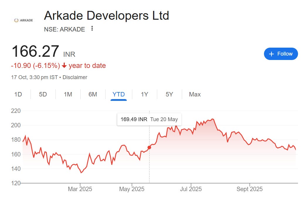 As at 30th September 2025, Arkade has an Order Book of INR 13,500 Cr — an increase from INR 8,790 Cr in Q4FY26.
