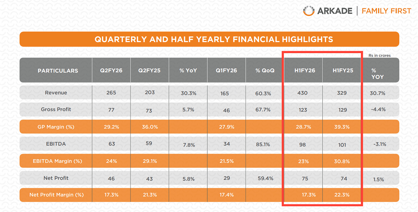 Management however, maintains an EBITDA margin guidance of 30% for FY26 and expects margins in H2FY26 to be much better. Something that investors should closely watch out to see if Arkade can maintain margins as it scales.