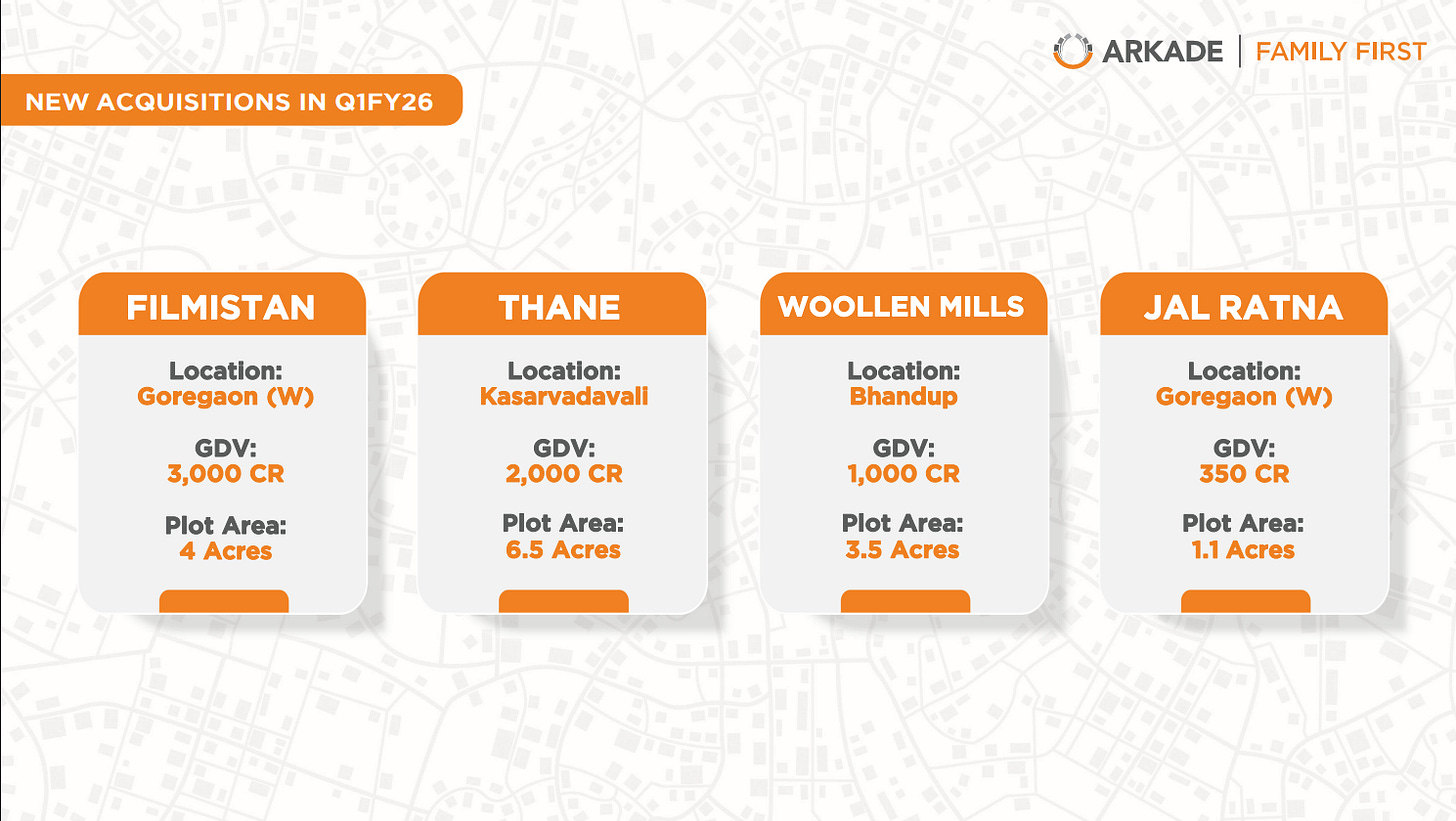 For the Dahisar redevelopment project — which is the company’s largest redevelopment project — timelines are not yet clear, due to certain restrictions and technical issues. Need to keep a close watch on this, to see if the GDV takes a hit due to delays in approval.