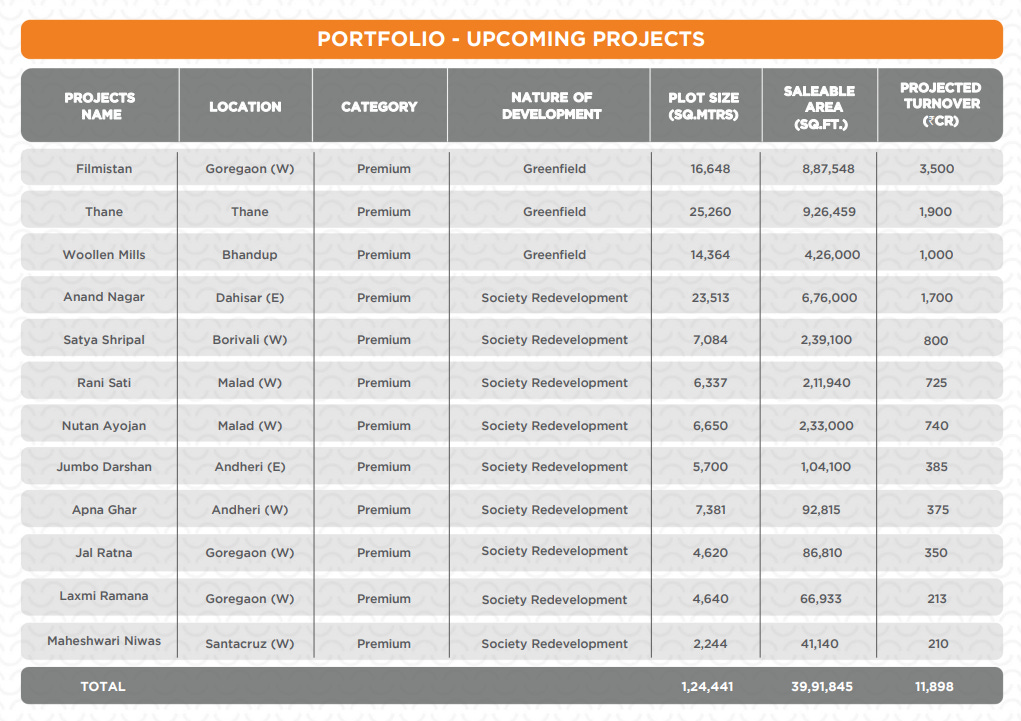 With the Filmistan acquisition — the company plans to foray into the Uber luxury segment offering 3 / 4 / 5 BHK residences and penthouses tailored for Mumbai’s growing HNI customer base. Mumbai, is really the city of extremes.